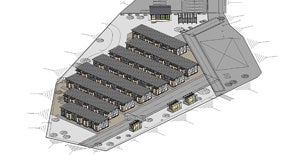 敷地の境界線を読み込むことで、仮設住宅や駐車場などの配置や数量などを自動配置し3次元モデルにできます。