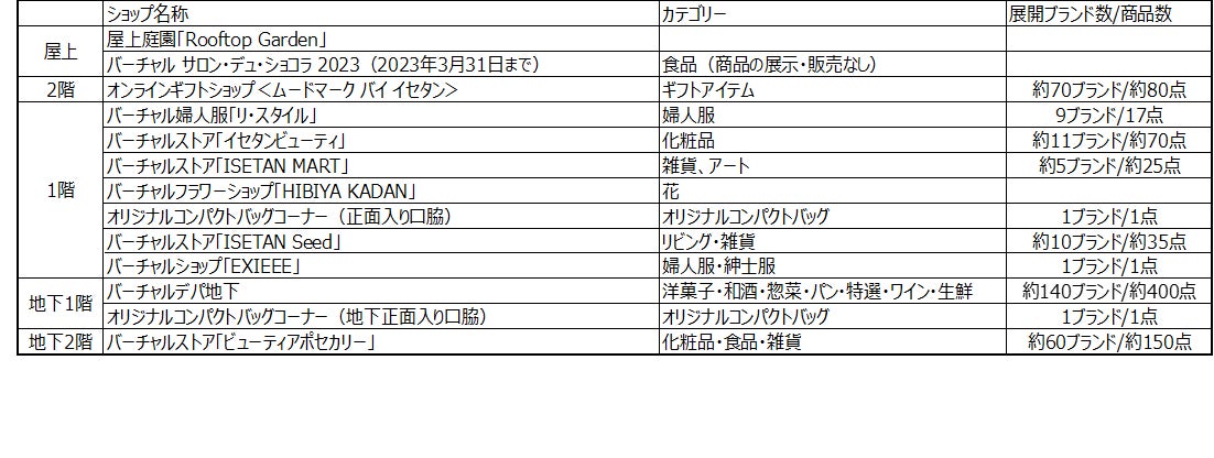 - 【参考】REV WORLDS内仮想伊勢丹新宿店のエリア・ショップ一覧(2月28日時点)
