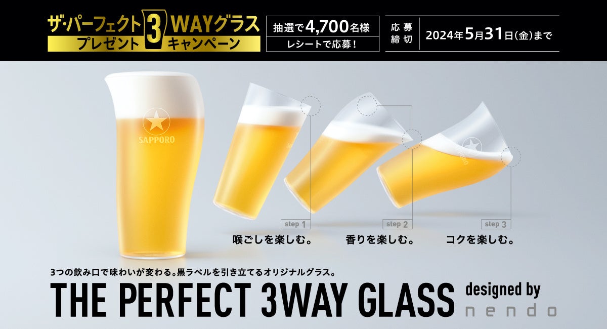 デザインオフィスnendoとのコラボレーション!サッポロ生ビール黒ラベル「ザ・パーフェクト3WAYグラス」プレゼントキャンペーンを実施