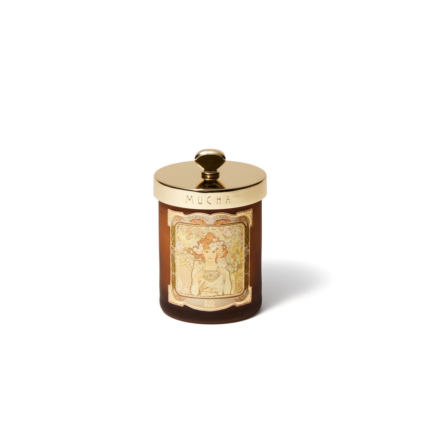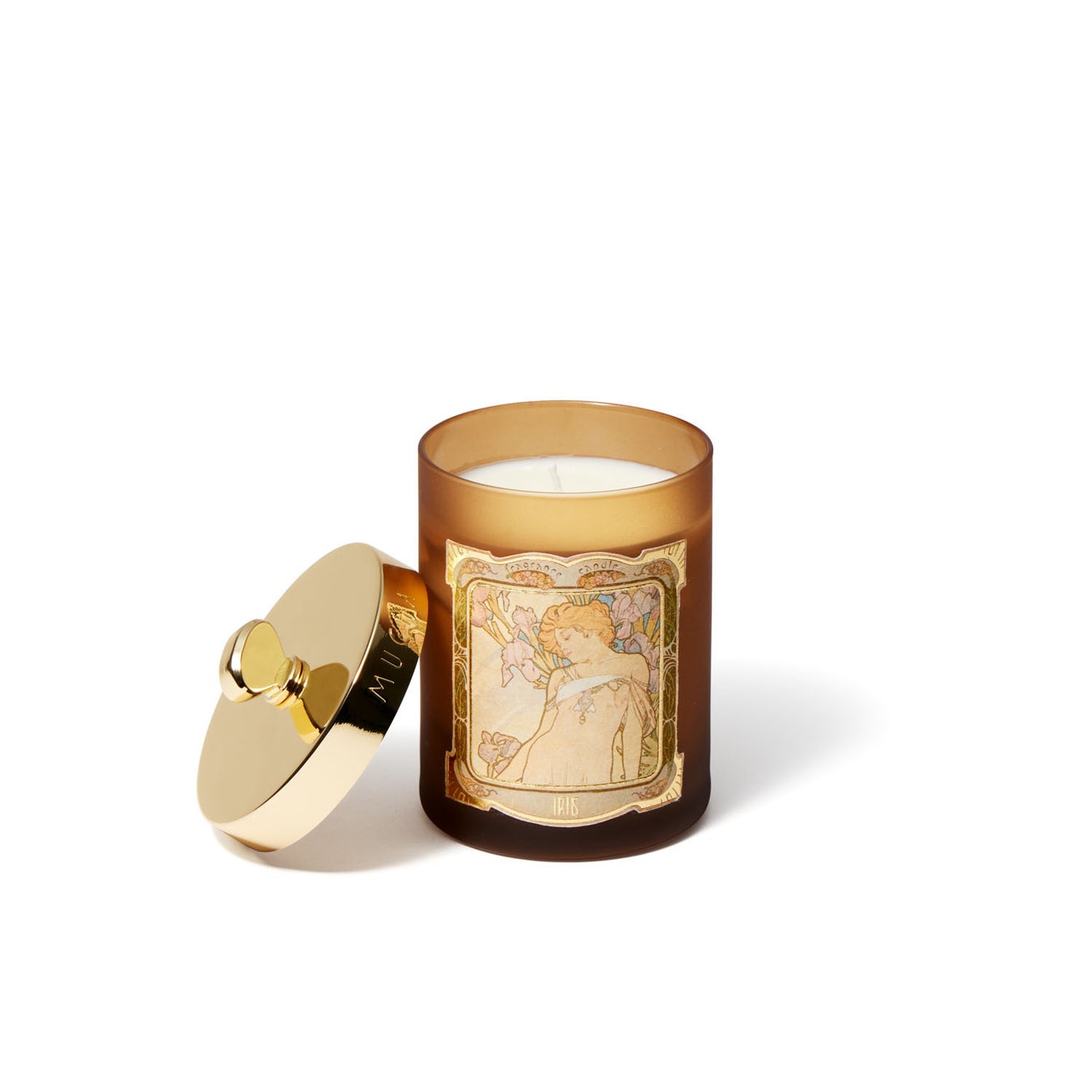 ミュシャの四連作“The Flowers”[四つの花] から生まれた4種の香りによるフレグランスキャンドル。ヴィンテージ調ブラウンのキャンドルホルダーにはミュシャが描いたカレンダーのフレームをオマージュした箔押しのラベルを施しました。