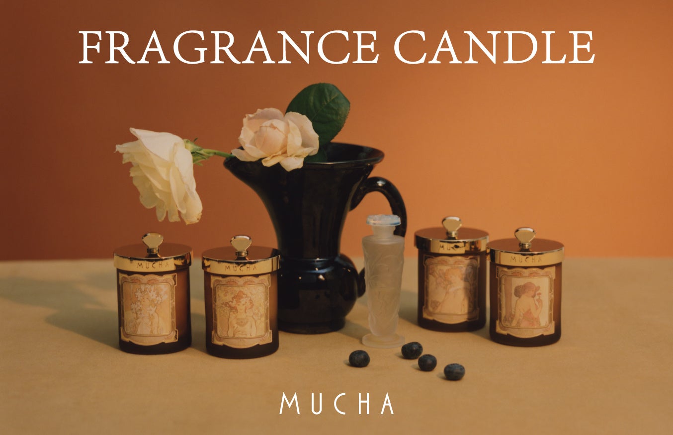【MUCHA(ミュシャ)】ミュシャの四連作をイメージした「フレグランスキャンドル」を発売。ミュシャの作品やアールヌーヴォーをオマージュしたデザイン