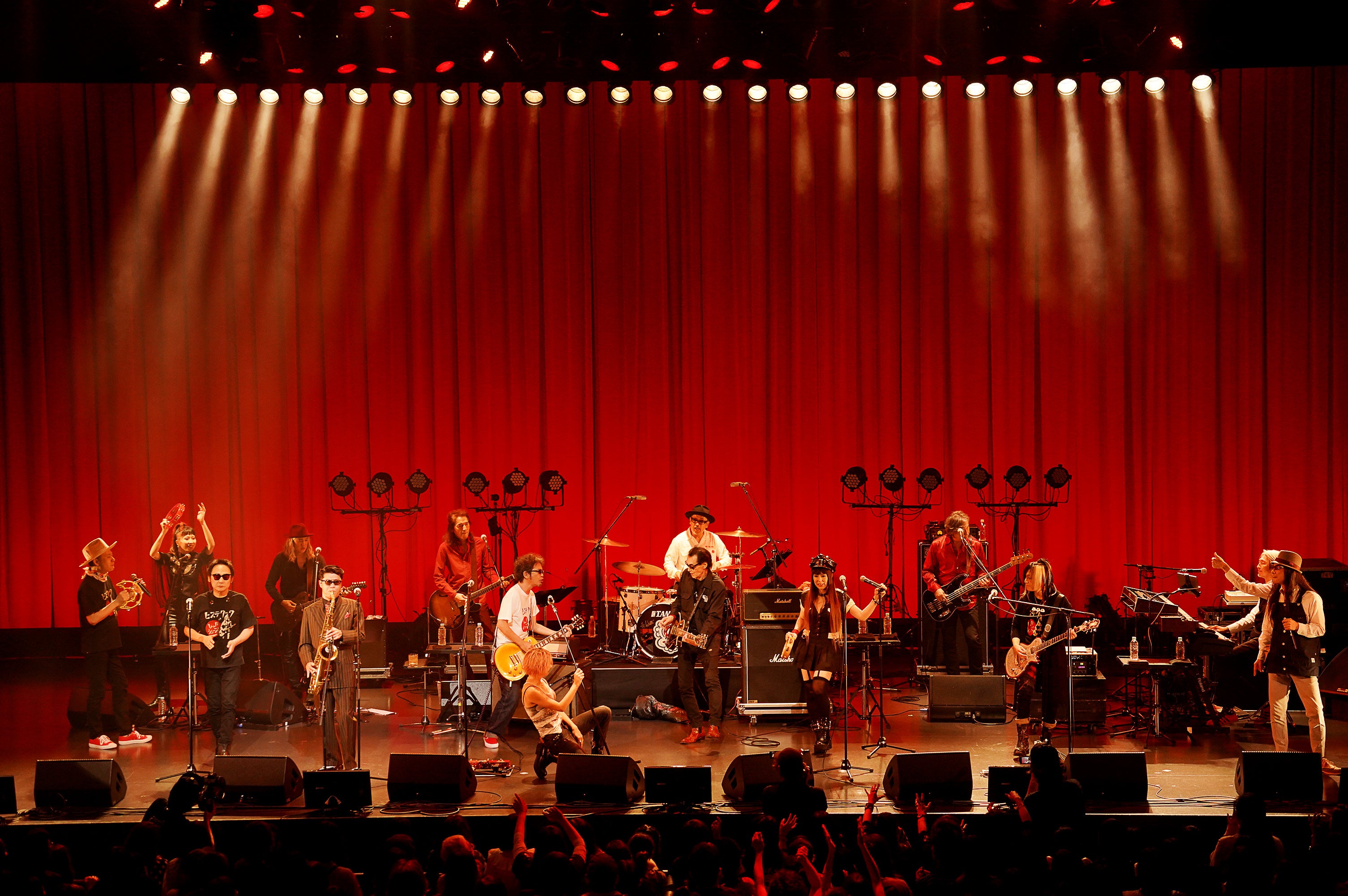 そしていよいよ開演。レッドシューズの店内を彷彿とさせる赤いステージに、元東京スカパラダイスオーケストラ・冷牟田竜之とMAGUMI率いるレピッシュのメンバーらによるスペシャルスカバンド「PAINT」が登場。「OUR LIFE」、「パヤパヤ」などレピッシュの人気ナンバーでライブ序盤から会場のテンションを一気に盛り上げた。