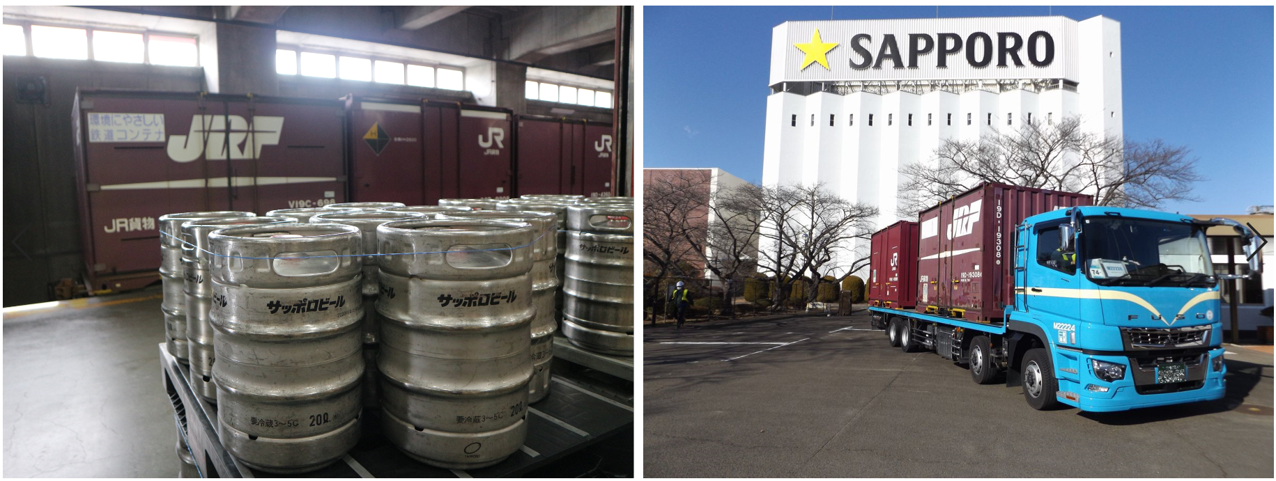 サッポロホールディングス(株)のグループ企業であるサッポログループ物流株式会社(代表取締役社長:田島 一孝、以下「サッポロ」)、日本貨物鉄道株式会社(代表取締役社長兼社長執行役員:犬飼 新、以下「JR貨物」)、日本運輸倉庫株式会社(代表取締役社長:柏井 省吾、以下「日倉」)、日本フレートライナー株式会社(代表取締役社長:峯 昭彦、以下「日本FL」)は、サッポロビール千葉工場からサッポロビール仙台工場内の仙台物流センターへの製品輸送の一部を、2月2日よりトラック輸送から鉄道輸送に切り替えます。