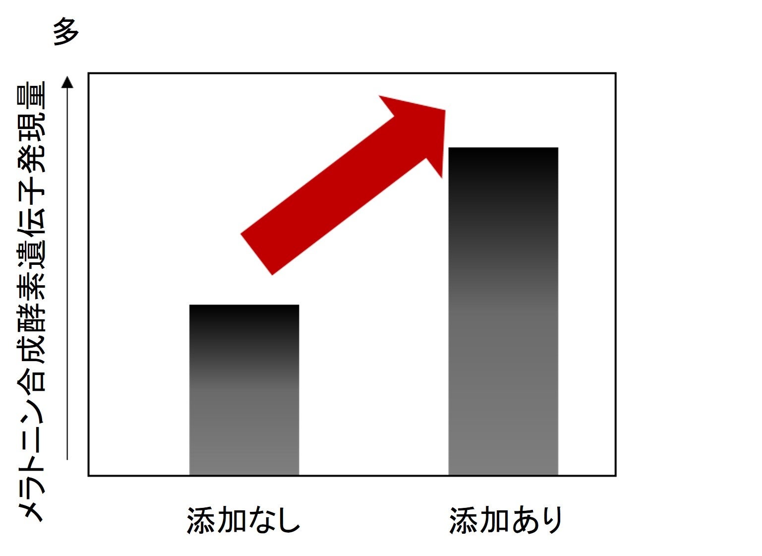 次に、肌におけるメラトニン合成酵素遺伝子の発現を高める成分を広く探索しました。その結果、エクトインに肌の細胞におけるメラトニン合成酵素遺伝子発現を高める効果があることを発見しました(図2)。夜間に合成が高まるメラトニンの合成が促進されることで、その抗酸化・抗炎症効果により肌がダメージ因子と戦う、肌の免疫機能の強化が期待できます。