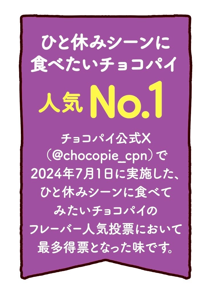 ロッテチョコパイチームで「ひと休みに最適な味わいは何か?」を追求した本シリーズ第1弾「チョコパイ<抹茶ティラミス>」(3月発売)は、春の穏やかさにマッチした味わいで販売計画160%超えとなるご愛顧をいただきました。今回は、より「ひと休み」に適した味わいを模索するため、昨年チョコパイ公式Xにて「ひと休みシーンに食べたいチョコパイのフレーバー」投票(※)を行いました。今回発売する「ミルクティー」は、この投票で1位に輝いたフレーバーです。