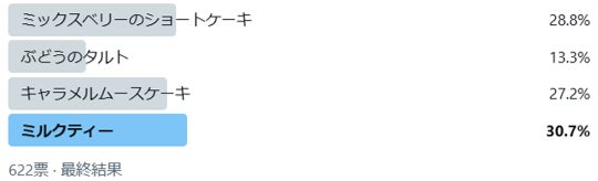 チョコパイファンの皆様がひと休みのシーンでどんなフレーバーを召し上がってみたいかをチョコパイ公式X(@chocopie_cpn)にて自由に回答いただきました。多数の貴重なご意見を基にロッテチョコパイチームが4つに絞り込み人気投票を行った結果「ミルクティー」が僅差で一番になりました!