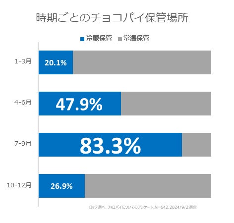今回改めて調査(※)を行ったところ、夏場は80%を超えるお客様がチョコパイを冷蔵保管しているということが分かりました。
