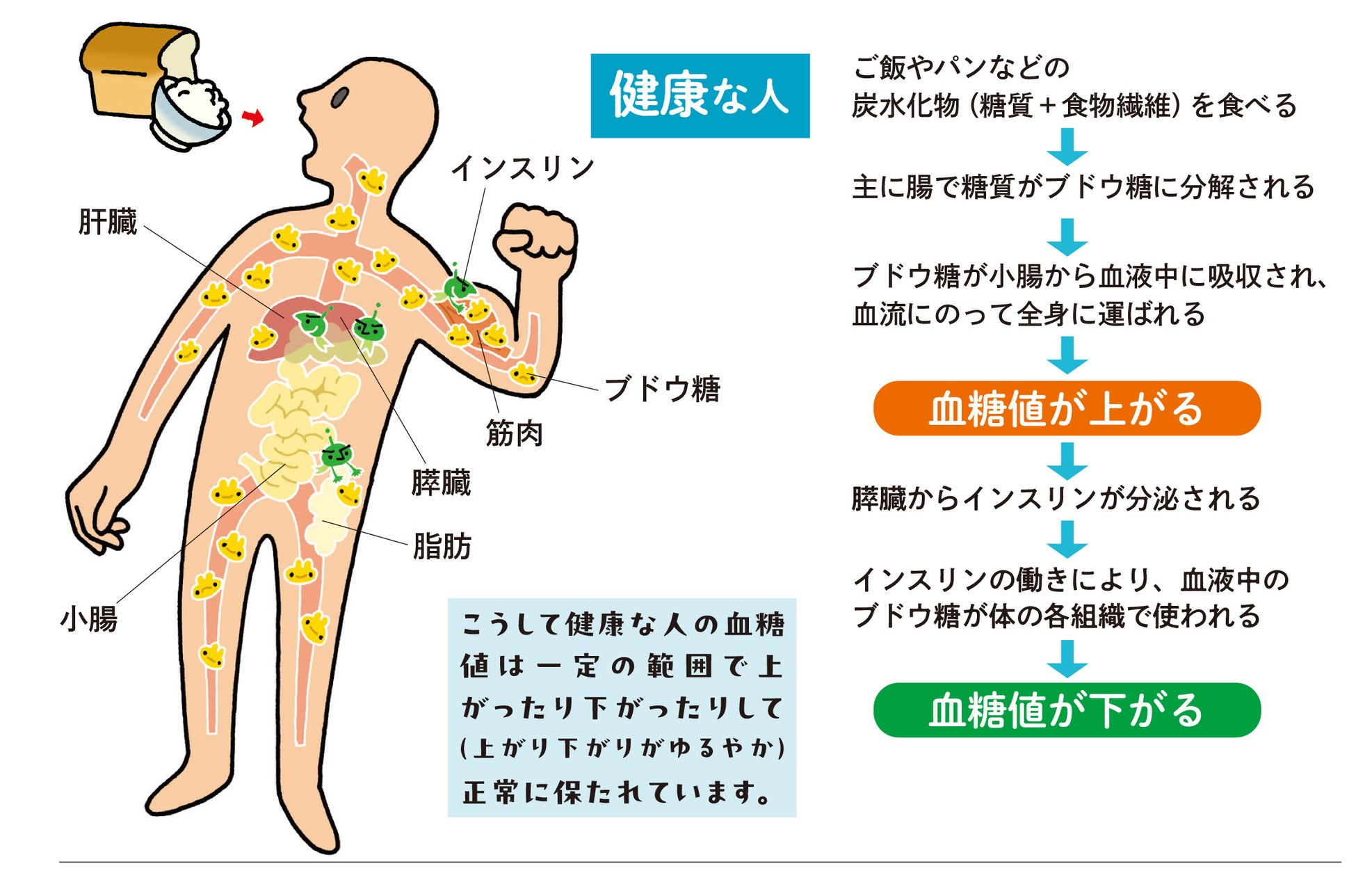 朝食でたんぱく質や食物繊維をしっかりとると、昼食の食後血糖値の上昇をゆるやかにできるのです。