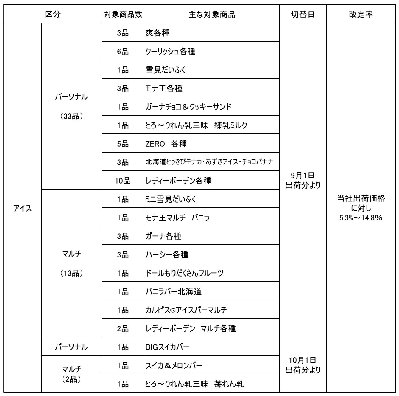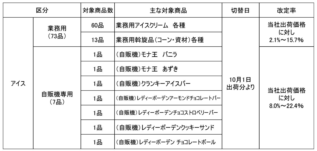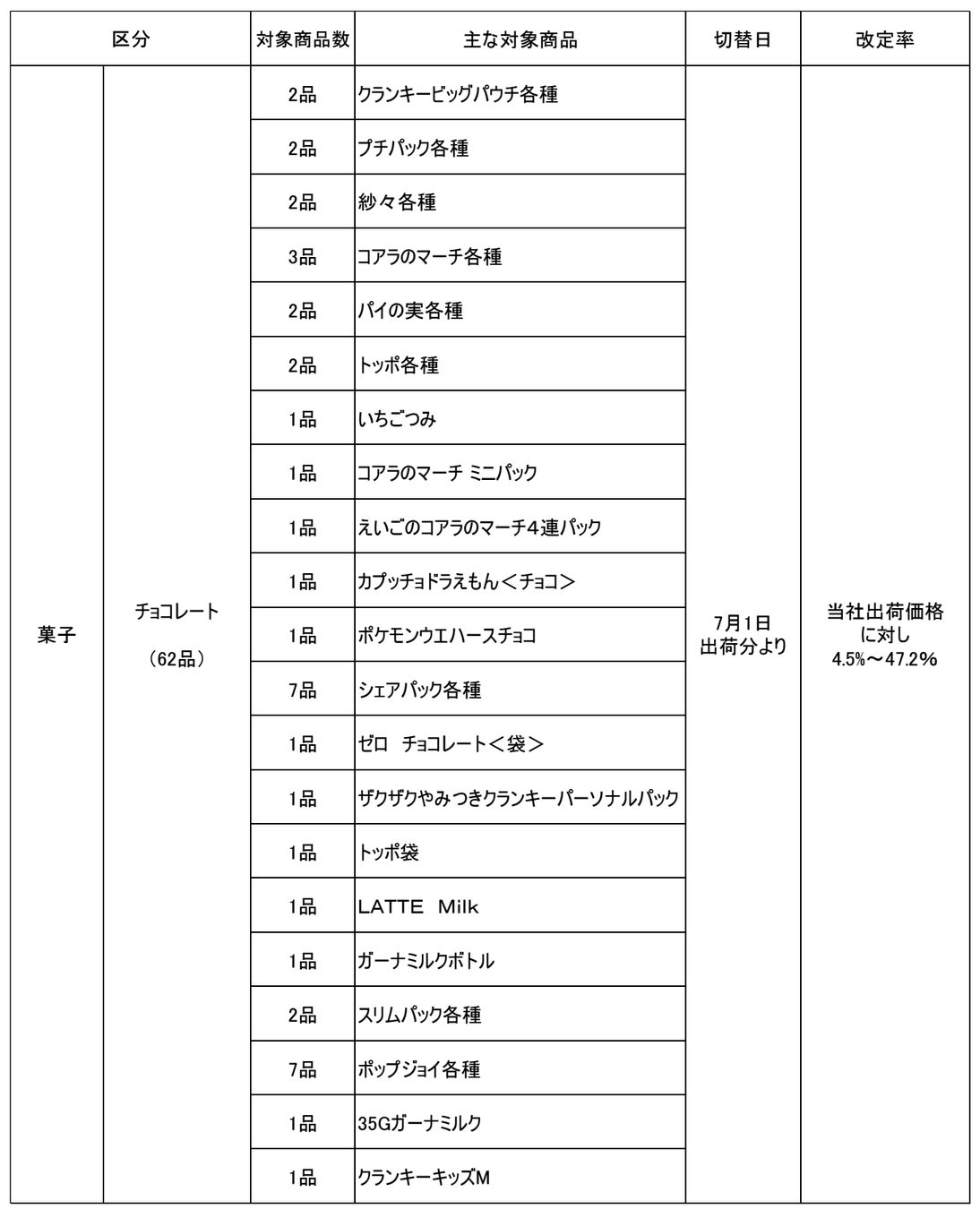 つきましては、やむを得ず下記商品について価格改定を実施させていただきます。