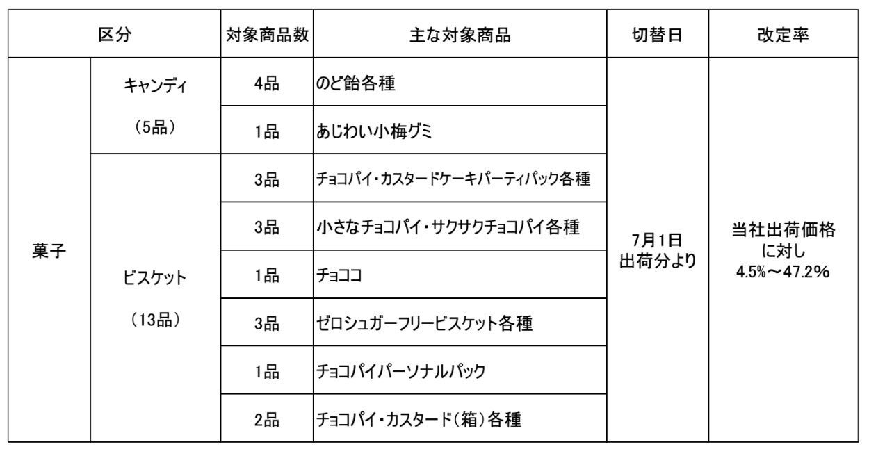 株式会社ロッテ(東京都新宿区、代表取締役社長執行役員:中島英樹)は、菓子商品とアイスクリーム商品の価格改定を実施いたしますのでお知らせします。