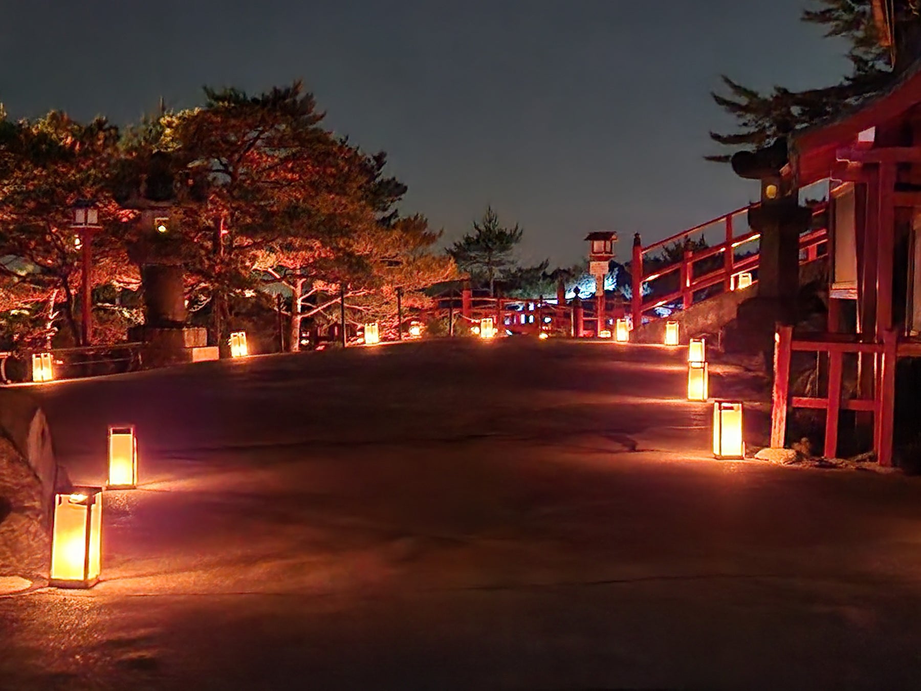 鬼押出し園(所在地:群馬県吾妻郡嬬恋村鎌原1053支配人:船山昭博)は、期間限定にて夏季夜間営業いたします。営業期間中は東叡山寛永寺別院浅間山観音堂までの園内コース「表参道」「裏参道」の全長約1㎞を灯篭とLEDライトでライトアップし、浅間山観音堂、水盤舎、惣門はさらに特別な光を当て幻想的な彩となり、昼間とはまったく別の異世界空間を創り出します。それはまるでお伽噺に出てくる真っ暗な海底の中に輝くアノお城を思わせるかのようです。まさに「絵にも描けない美しさ」、雄大な浅間山の麓、標高1,300mを超える高所で真夏であっても凛とした冷涼な空気に包まれた鬼押出し園をお楽しみください。