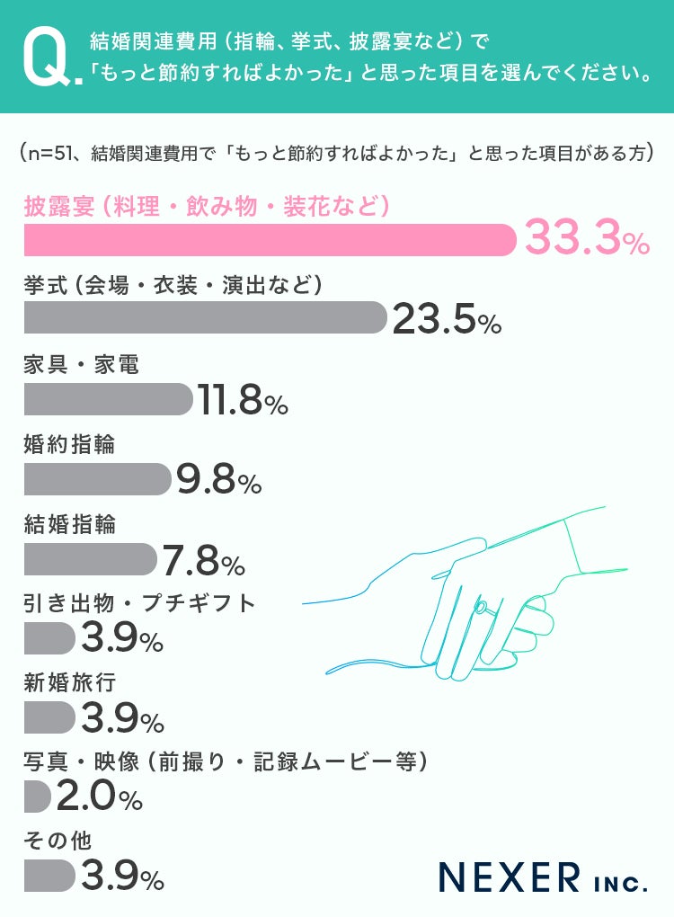 もっとも多かったのは「披露宴(料理・飲み物・装花など)」で33.3%でした。