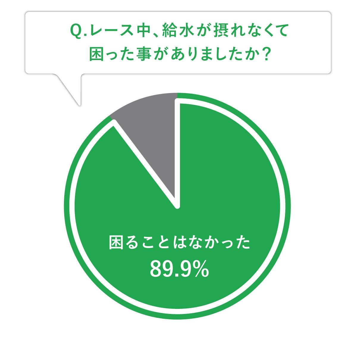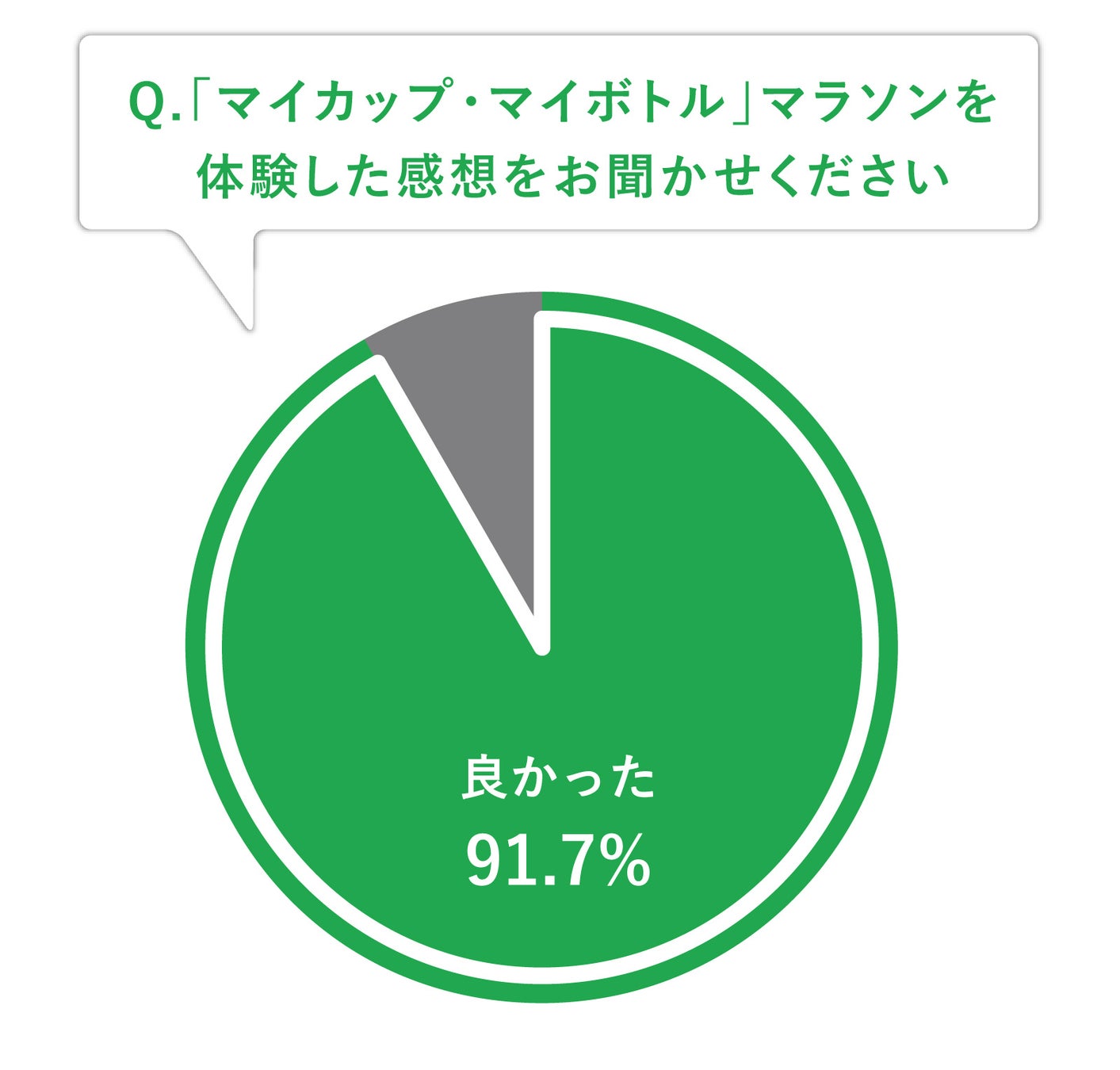 これらの取り組みを行ったことで、「マイカップ・マイボトル」を体験した感想では「良かった」が91.7%(昨年比9.0ポイント増)。「レース中に給水で困ったことはなかったか?」では、「困ることはなかった」が89.9%(昨年比19.4ポイント増)となりました。
