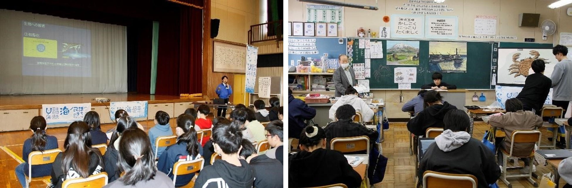 参加した児童たちは、「海の学び」講義ではメモを取るなどして熱心に講師の話に耳を傾けていました。