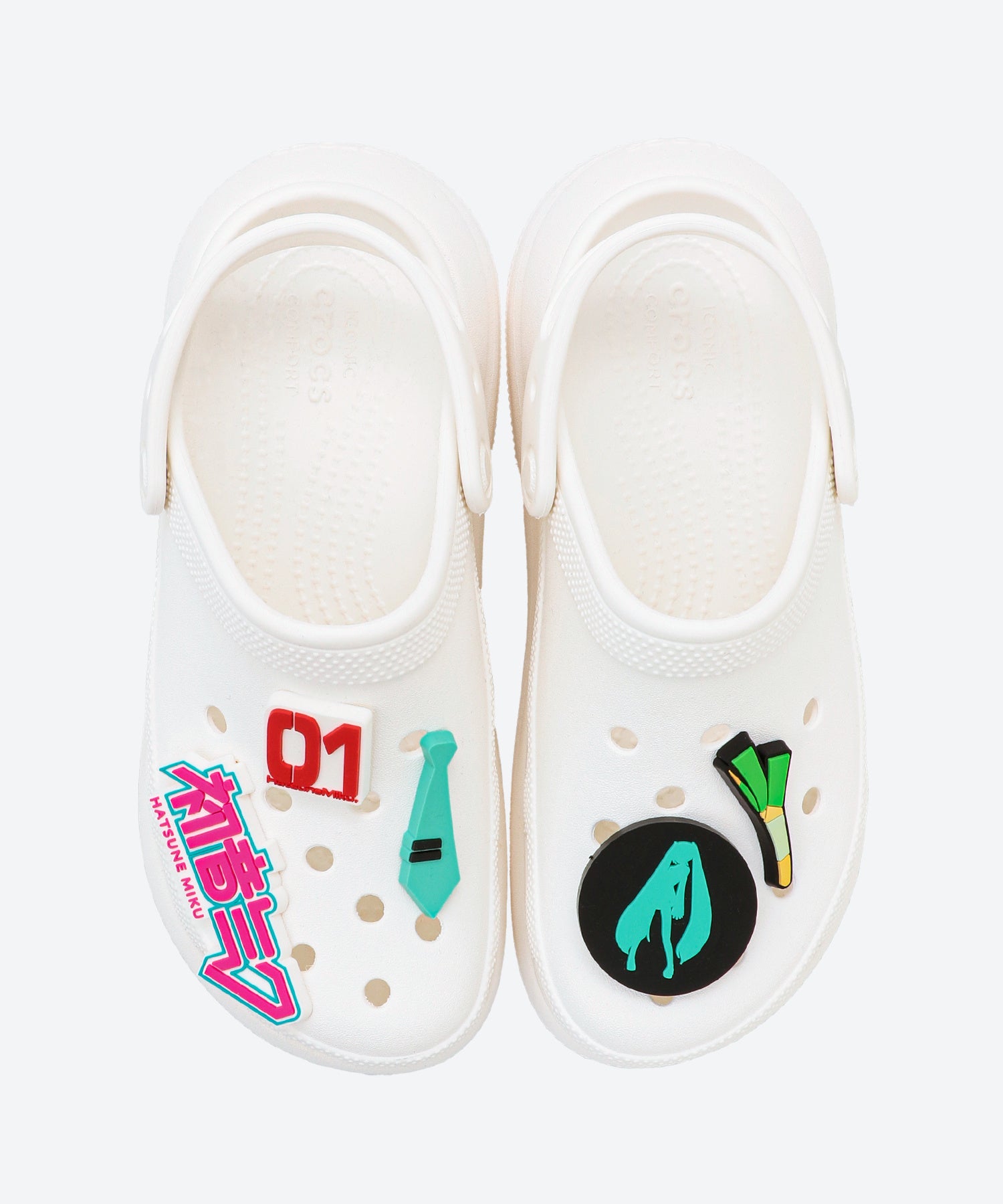 初音ミクオリジナルジビッツ™を厚底クロッグにつけて、自分だけの初音ミク×crocsをお楽しみ頂けます。