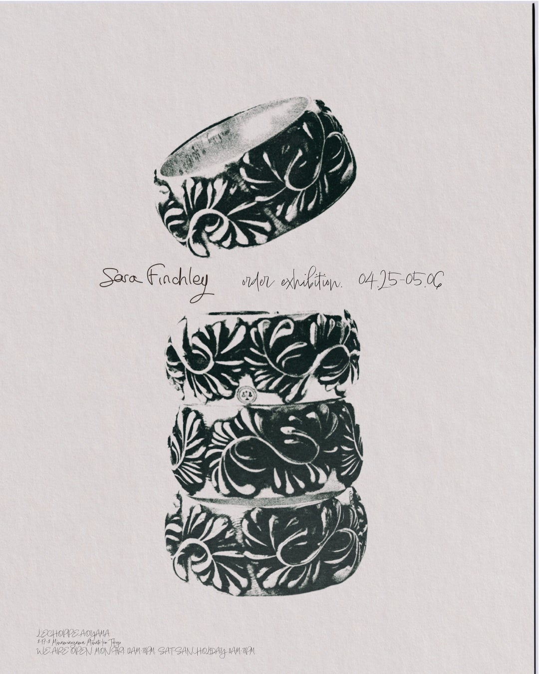 〈Sara Finchley〉が持つ静謐な空気感と、有機的な造形の美しさを、ぜひ店頭にてご覧ください。