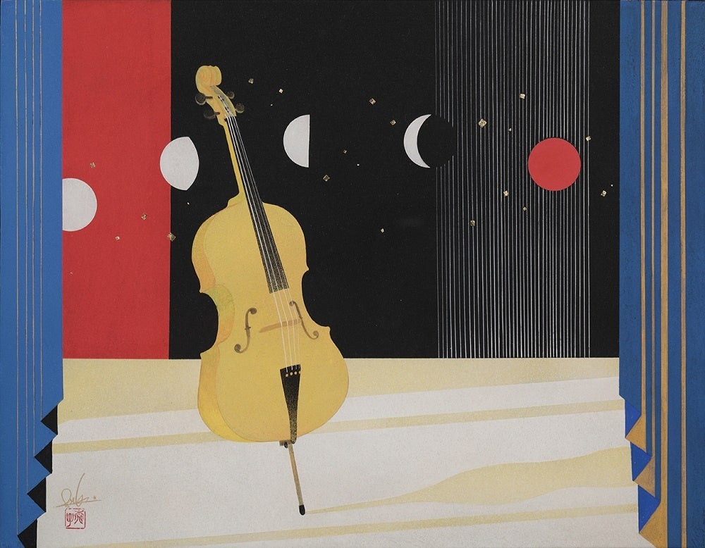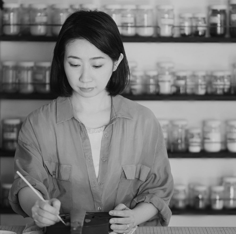 洗練された画面構成とデザイン性の高さを感じさせる作風で、従来の日本画の枠にとらわれることなく自らの世界を確立し、注目を集める繭山桃子。