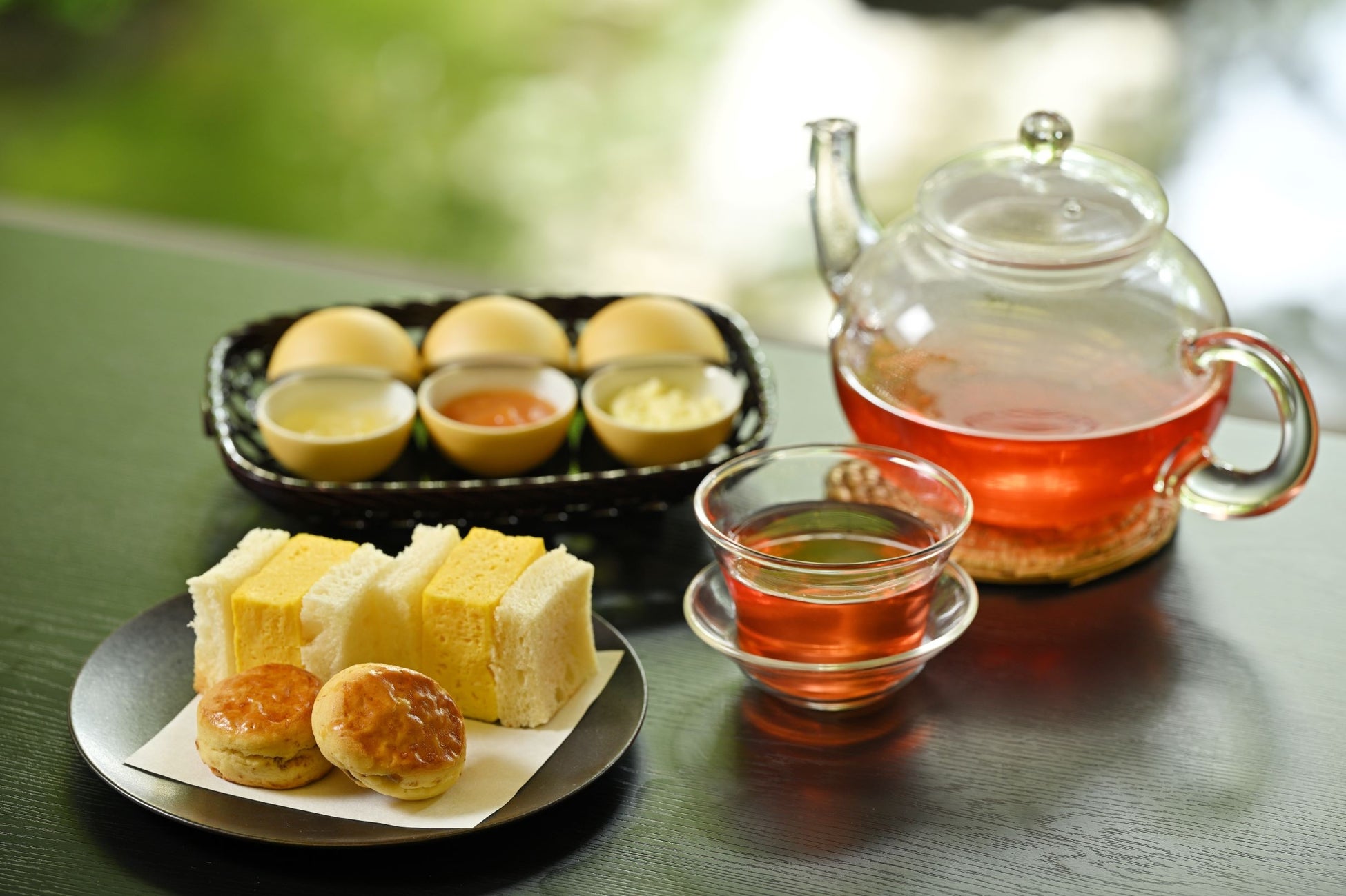 京小麦「せときらら」を使用した生食パンで「日本料理 宝ヶ池」のジューシーなだし巻きをサンドしました。西京味噌を合わせたマヨネーズがアクセントです。
