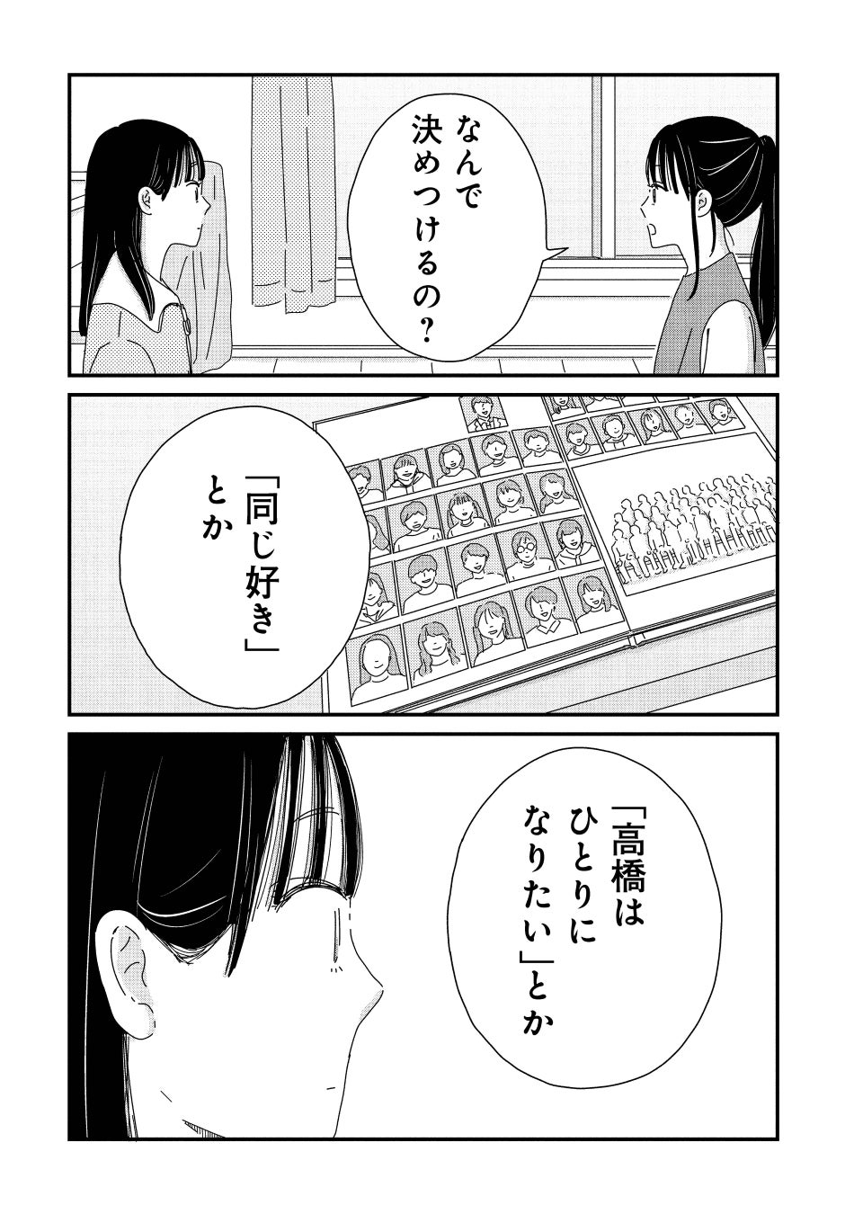 「今日も隣にいてくれて、ありがとう――」高橋に気を遣って、朝の登校中に高架下へ寄らないようにしていた近藤。久しぶりに立ち寄った時、高橋の隣に橘がいたことが少し心に引っかかっていた。そんな折、中間テストの勉強をするため、橘が近藤の家にやって来て……。