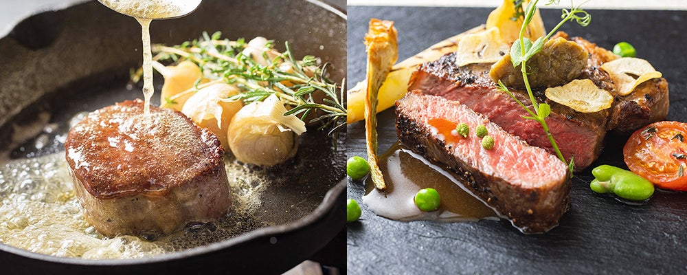 この他、前菜、スープに、スペシャリテ「フォアグラのソテー 大根添え」もラインナップ。夏本番を迎える前のスタミナ補給に、シェフ・田面山がご用意する贅沢なステーキコースをお楽しみください。
