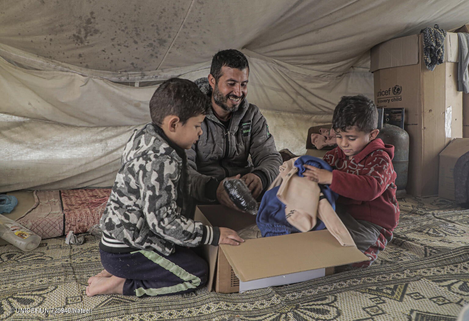 ガザ地区で長く待ち望まれた停戦が先月19日にようやく発効して以来、ユニセフ(国連児童基金)は水、せっけんや洗剤などの衛生用品、栄養や保健医療に関する物資、そして赤ちゃんや子どものための防寒着や防水シートを、昼夜問わず、地区内に輸送し続けています。