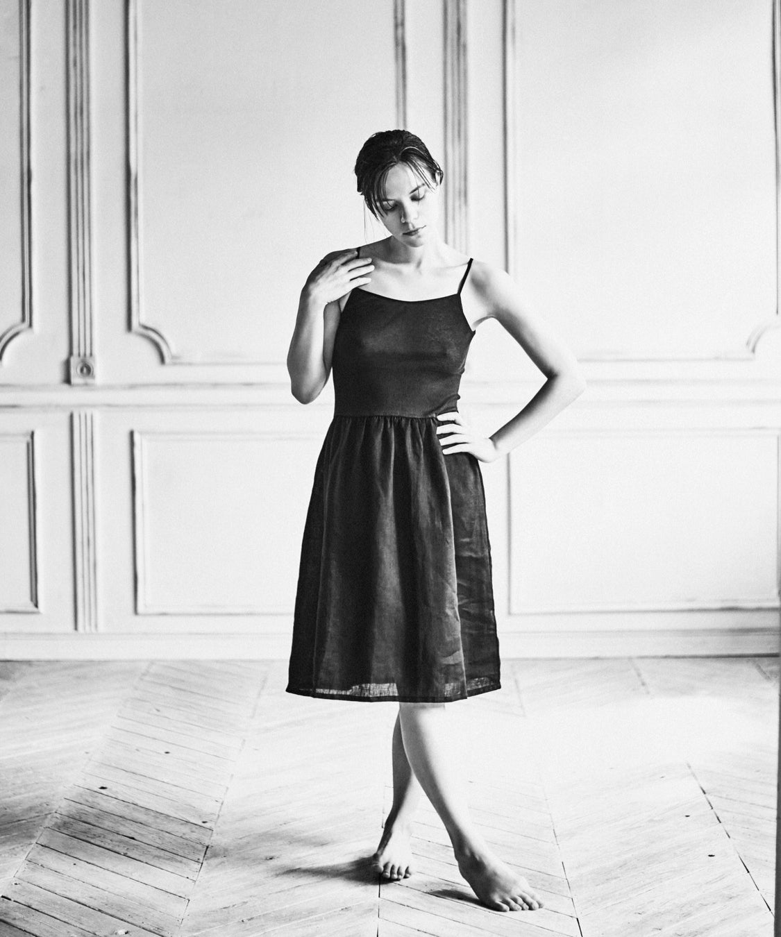 <エルニ>Design no.3 / cotton linen, linen / slip dress / charcoal, beige rose / 18,700円