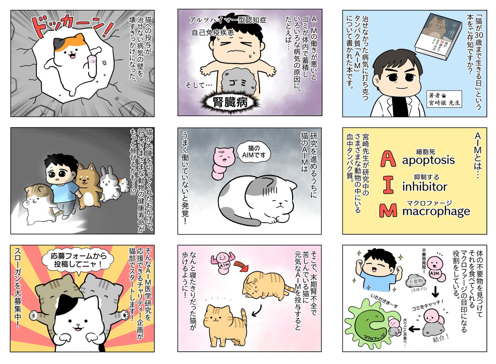 近い将来、猫でも人でも、今まで治らなかった病気をひとつでも治すことができるよう、AIMの研究に一層尽力いたします。今後とも応援の程宜しくお願い申し上げます。この度は誠に有難うございました。