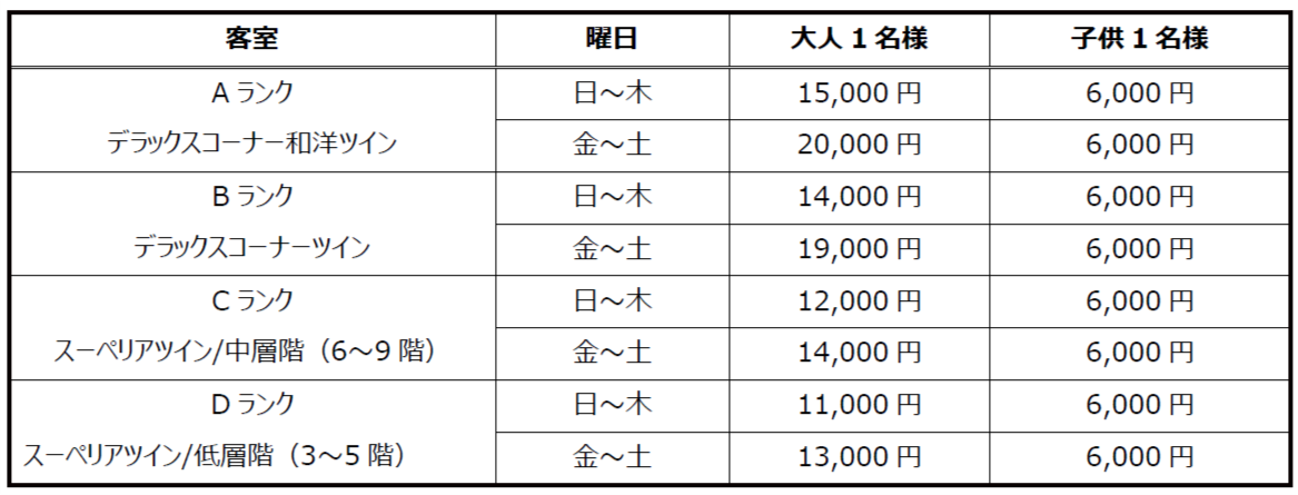 D)ご利用料金(1名様あたり)