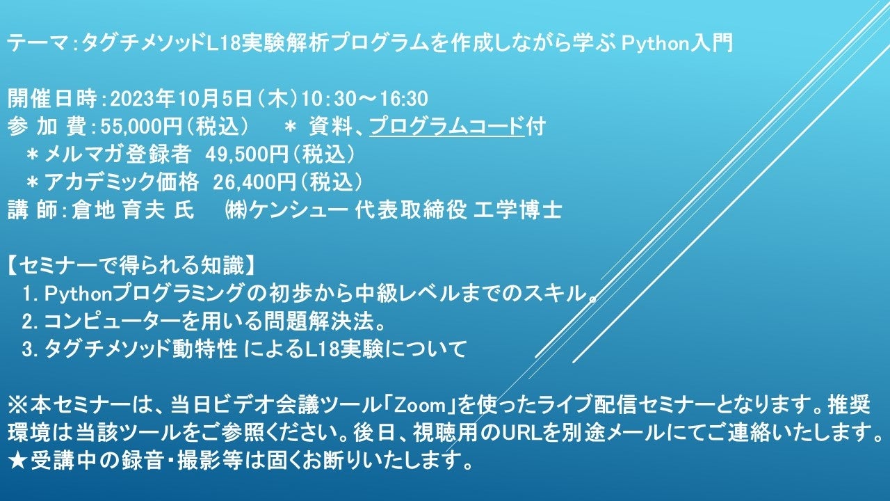 【ライブ配信セミナー】タグチメソッドL18実験解析プログラムを作成しながら学ぶ Python入門 10月5日(木)開催 主催:(株)シーエムシー・リサーチ