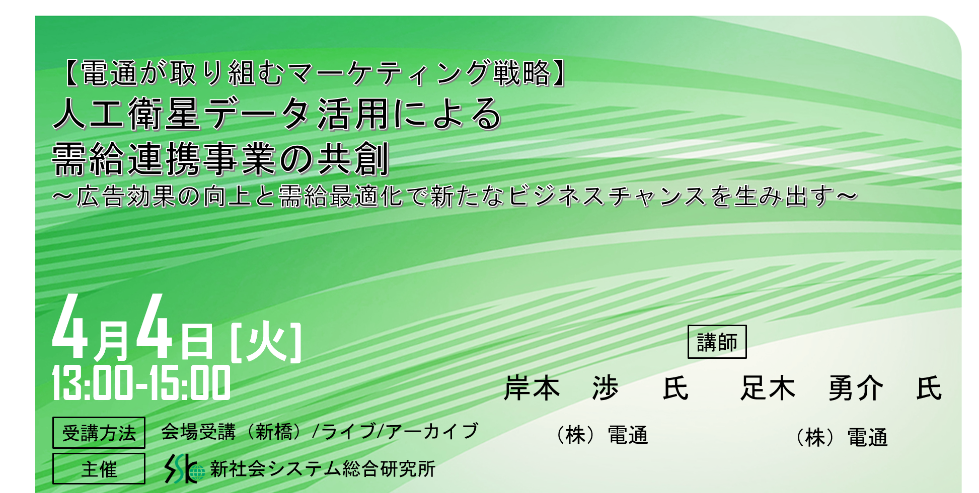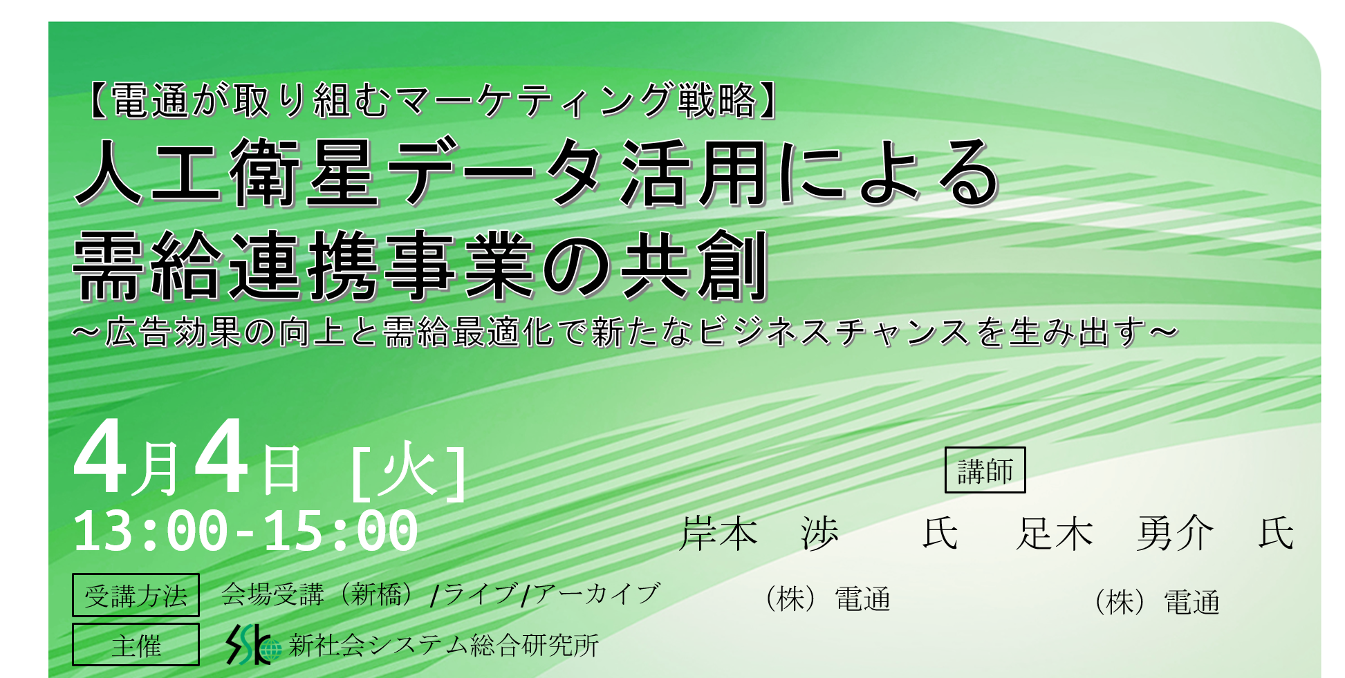 「人工衛星データ活用による需給連携事業の共創」と題して、(株)電通 ラジオテレビビジネスプロデュース局 岸本氏/足木氏によるセミナーを2023年4月4日(火)に開催!!