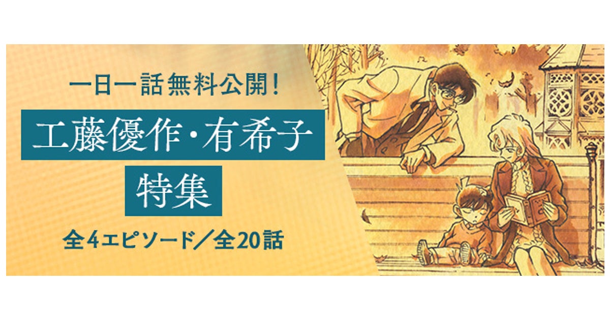 本特集では、「工藤優作」と「工藤有希子」が登場するエピソードをまとめた特集を実施します。「名探偵コナン公式アプリ」内にて、全4エピソード20話を、1日1話無料でお読みいただけます。プレミアムクラブ会員の方は、公開された話は期間中いつでも無料購読できます。会員ではない方も期間中、第14巻の「追いつめられた名探偵! 連続2大殺人事件[2]」と各エピソードの1話目は、公開後いつでも無料購読できます。