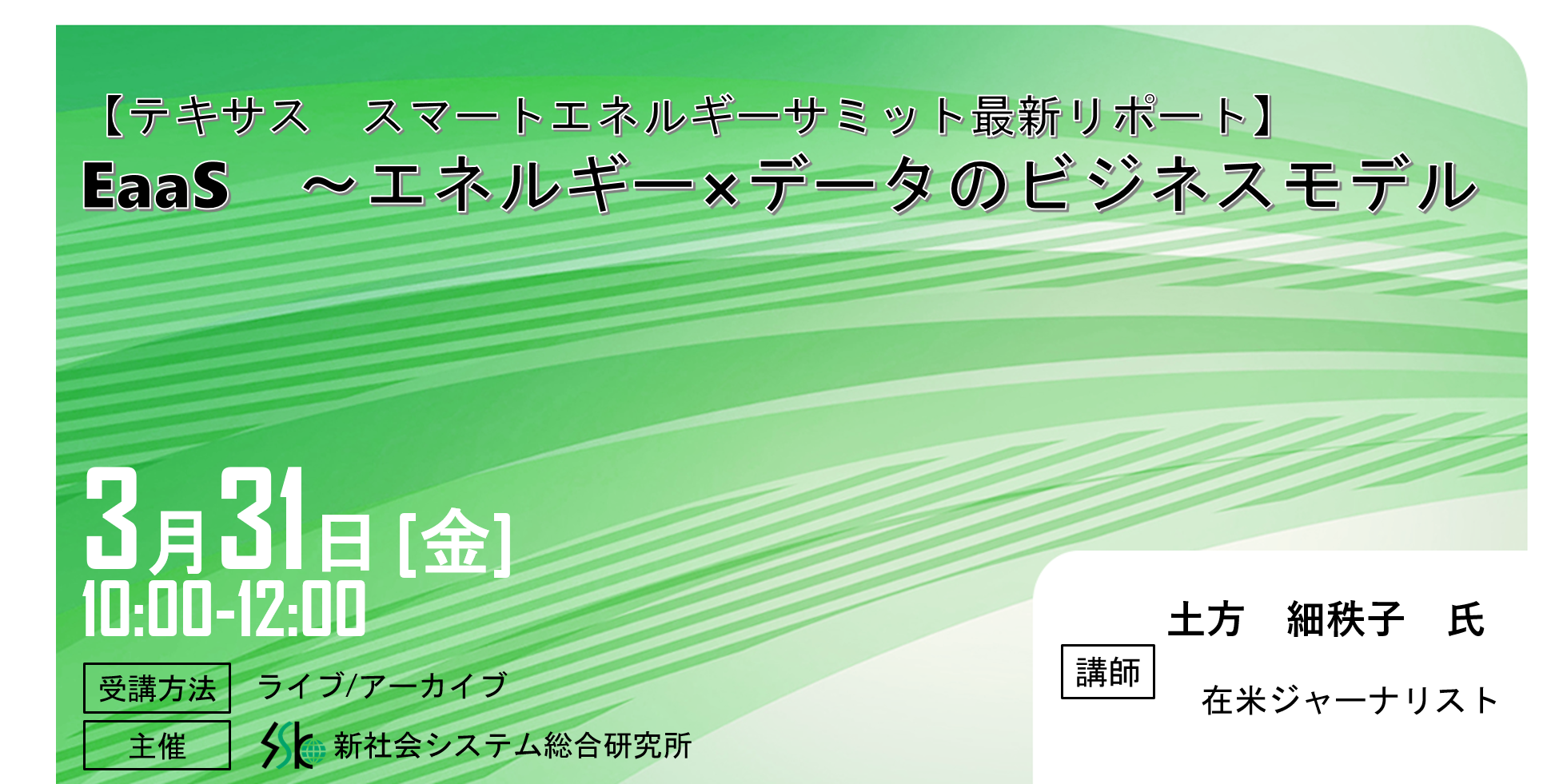 「EaaS ~エネルギー×データのビジネスモデル」と題して、在米ジャーナリスト 土方 細秩子氏によるセミナーを2023年3月31日(金)に開催!!