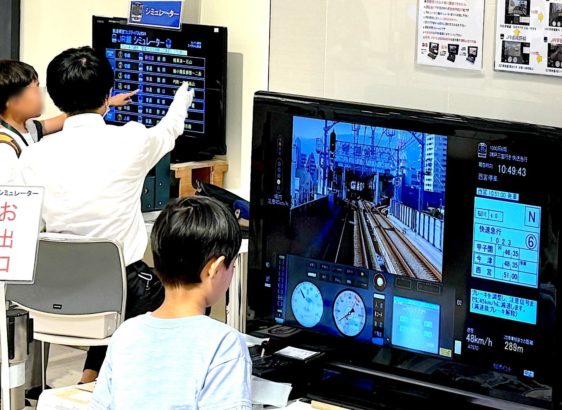 運転席からの眺めや音をリアルに再現。専用運転席も本物さながら。阪急とJRのシミュレーターが楽しめます。