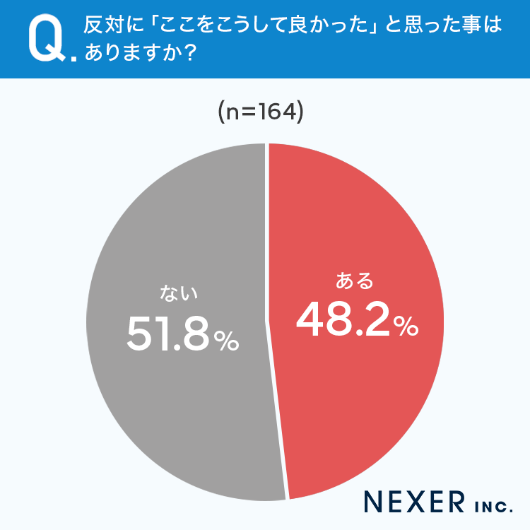 後悔がある方と同じ割合で、成功を実感している方もいるという興味深い結果です。
