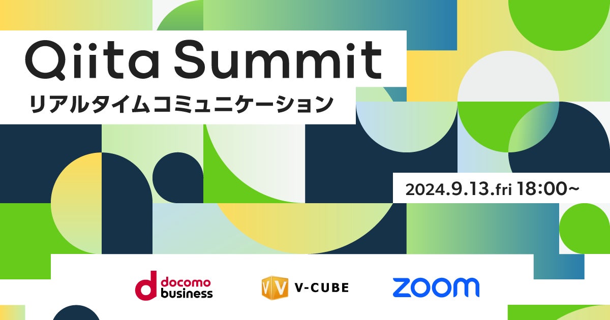株式会社エイチームのグループ会社で、エンジニアに関する知識を記録・共有するためのサービス「Qiita(キータ)」を展開しているQiita株式会社(本社:名古屋市中村区、代表取締役社長:柴田 健介)は、NTTコミュニケーションズ株式会社(本社:東京都千代田区、代表取締役社長:小島 克重、以下NTT Com社)、株式会社ブイキューブ(本社:東京都港区、代表取締役社長 国内CEO:高田 雅也、以下ブイキューブ社)、ZVC JAPAN株式会社(本社:東京都渋谷区、代表取締役会長兼社長:下垣 典弘、以下ZVC JAPAN社)と、オンライン共催イベント「Qiita Summit ~リアルタイムコミュニケーション~」を2024年9月13日(金)に実施いたします。