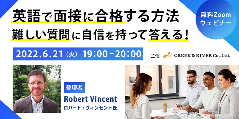 株式会社クリーク・アンド・リバー社(C&R社)は6月21日(火)、グローバル企業で働きたい方々を対象に、無料のオンラインセミナー「英語で面接に合格する方法 ~難しい質問に自信を持って答える!~」を開催いたします。