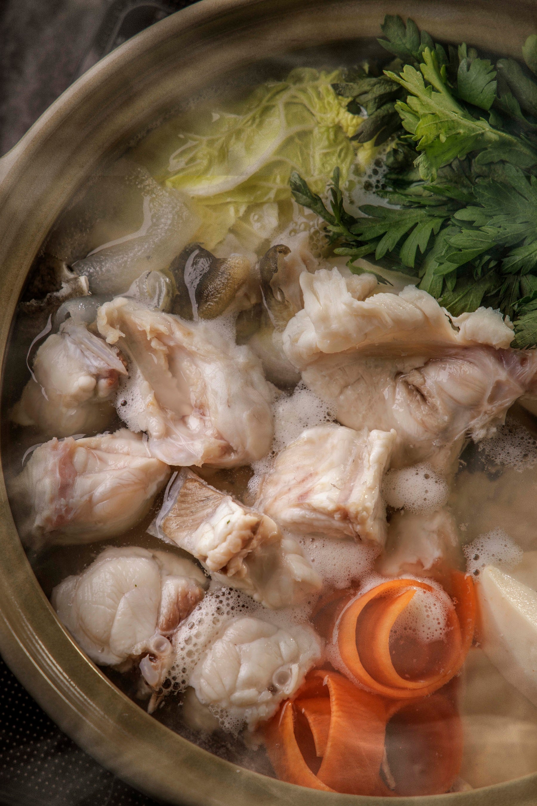 〇 鍋 :地鶏の水炊き鍋コース 季節の野菜 茸 豆腐 葛切り ポン酢 薬味