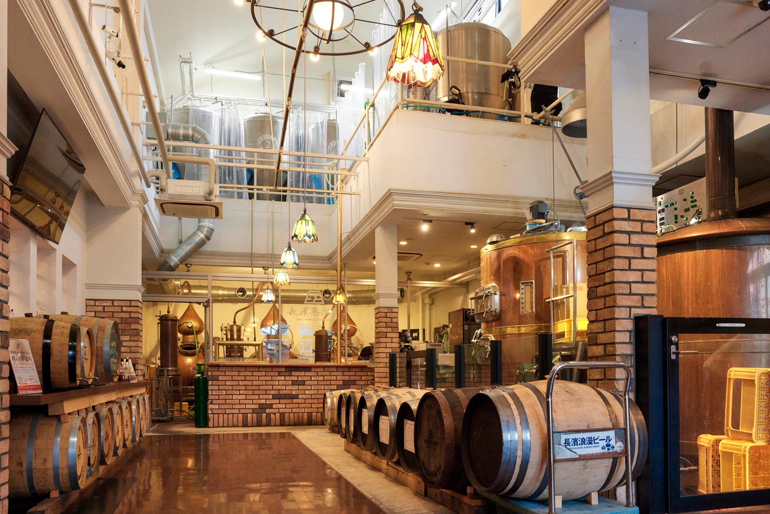 国内最小規模の「長濱蒸溜所」(滋賀)では、建物に入るとすぐに製造工程が見られる。併設するレストランの利用者も見学可能だ。