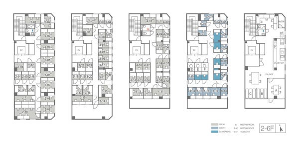 オフィス仕様:コワーキング30席、1名ブース15室、1名個室41室、2名個室8室、3名個室5室、4名個室3室、5名個室1室、会議室(4名)1室 、TELブ―ス3室