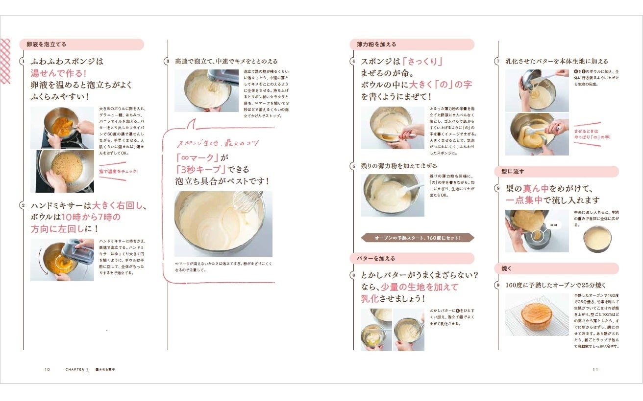■スポンジケーキは「泡立てするボウルは10時から7時の方向に回す」「型に流し込むときは、中央に1点集中で」で劇的上達!