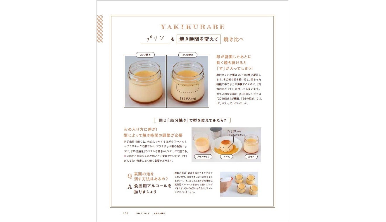るいさんのSNSでたびたびバズっている、材料や手順をかえて仕上がりを比較する「焼き比べ」も12本収録。スポンジ生地を「小麦粉の違い」で焼き比べ、スコーンを「バターの温度」で焼き比べ、マフィン生地を「形状の違う型」で焼き比べなど、理論をより深く理解したり、選択肢を整理する手助けに。初心者でもいきなりおいしく美しいお菓子がつくれ、中上級者もブラッシュアップのヒントが見つかる1冊です。