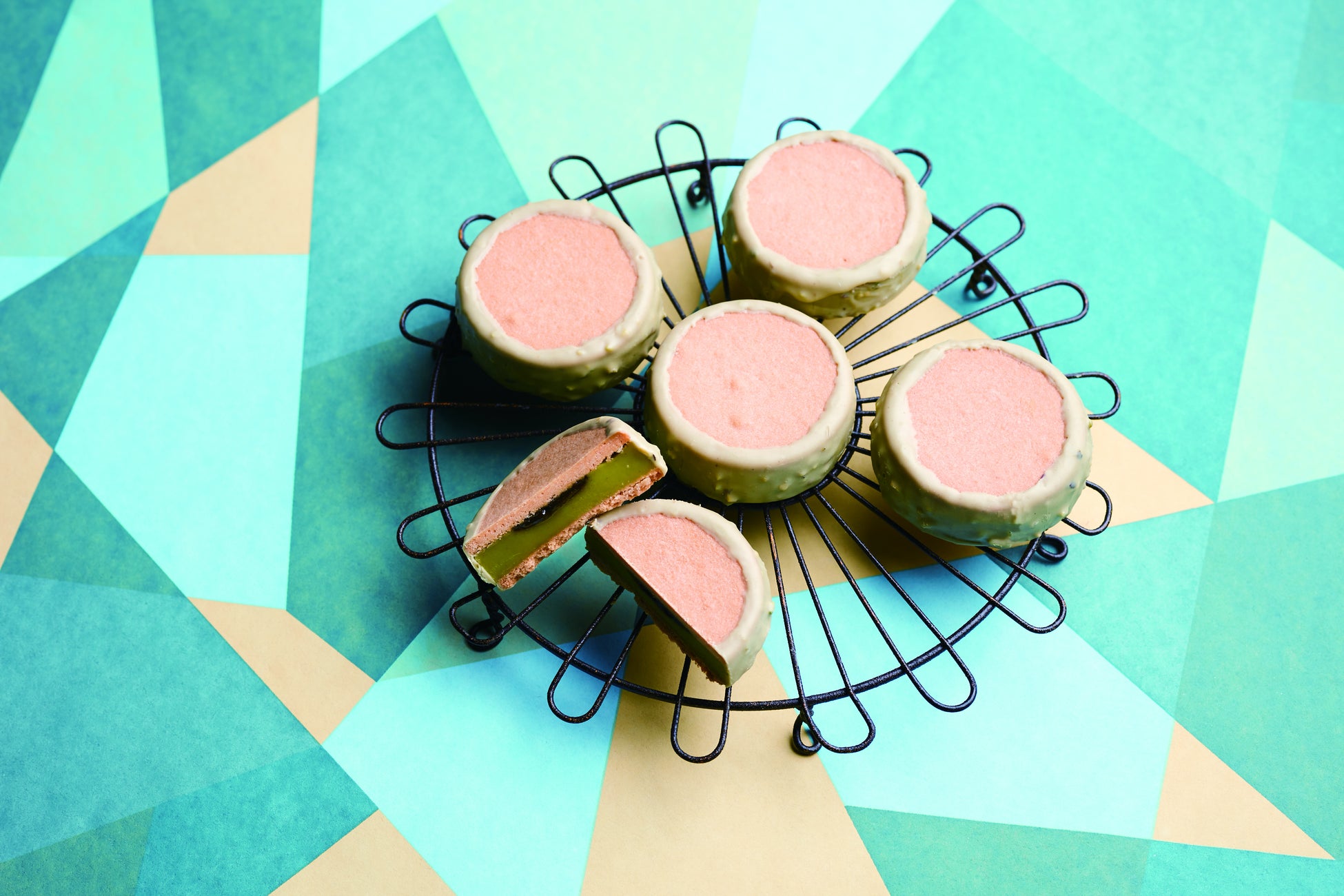 オンラインショップからスタートし、2023年に実店舗がオープン予定のパティスリー<リフェンリ>。イベント会場では、清水佑紀シェフによる、ピスタチオづくしのお菓子が先行販売で登場。ピスタチオペーストを使ったミルキーなガナッシュとピスタチオの粒感を残した自家製プラリネピスターシュを、サクサクのアーモンドサブレでサンド。サクサクのアーモンドサブレ、そしてパリッとしたパータグラッセの組み合わせをお楽しみください。