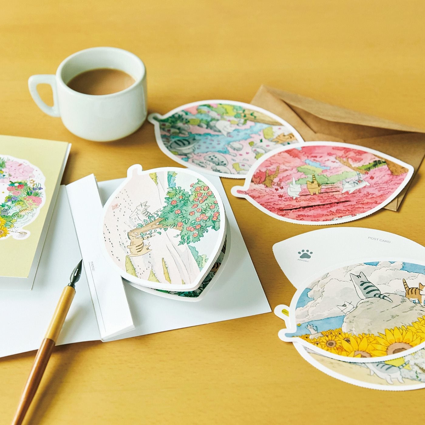 ダイカットポストカードブックのデザインは3種類。それぞれ4柄×各2枚の8枚セットです。