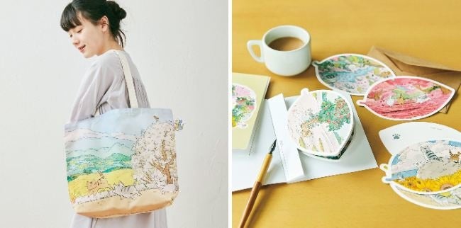 日本画家 久保智昭さんとつくった「猫とお花の季節のトートバッグ」と「猫とお花の季節のダイカットポストカードブック」がフェリシモ「猫部™」から新登場