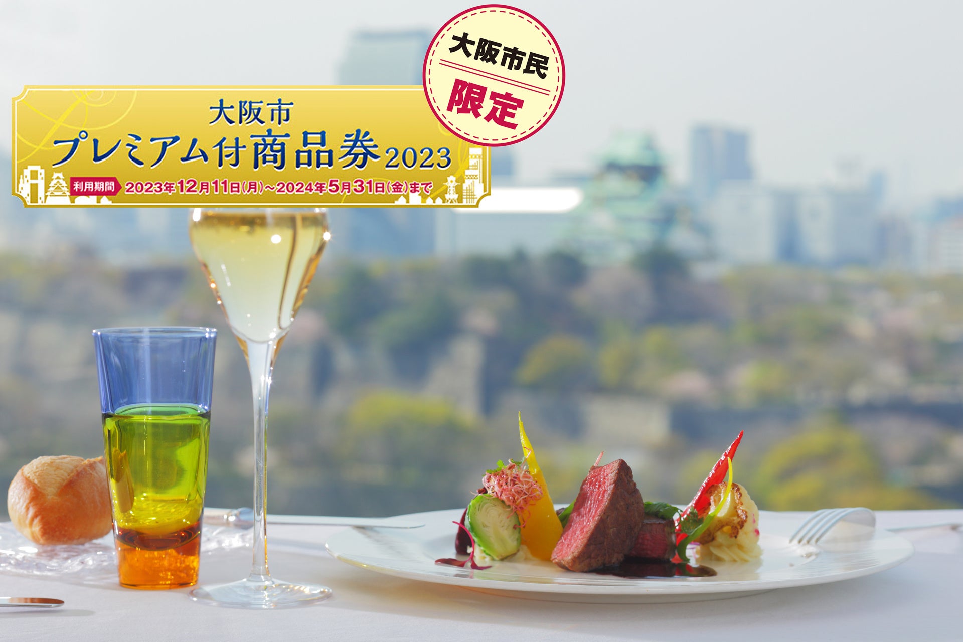 ホテルニューオータニ大阪では、2023年10月3日(火)より購入申込が開始された「大阪市プレミアム付商品券」が、ご宿泊、ホテル直営レストラン・バーでご利用いただけます。プレミアム商品券のお得さにホテル独自の優待を加えた、レストランプランを販売します。