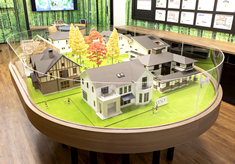 ショップ内には、1/45スケールの個性あふれるリアルな住宅模型を展示しています。お気に入りの商品を見つけ、大画面モニターを活用して、戸建住宅に暮らすイメージや建物内部のデザイン、空間をバーチャル体験をしていただくことも可能です。