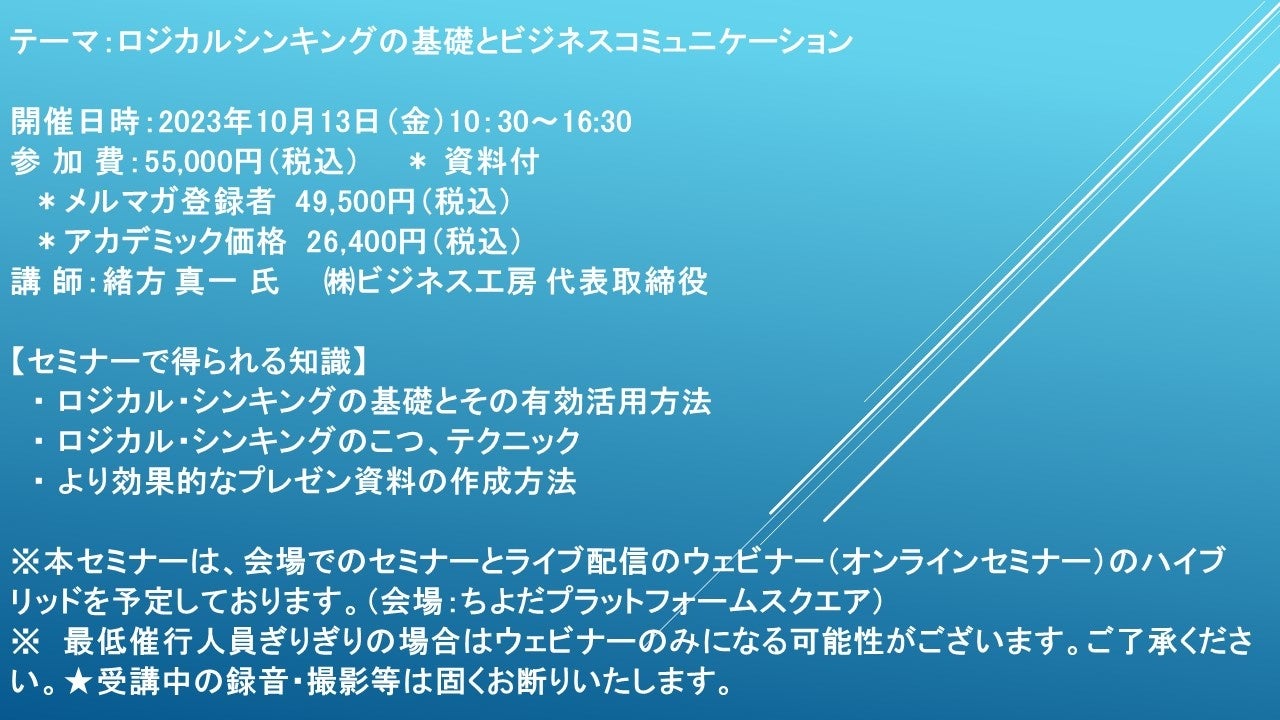 【会場/ライブ配信ハイブリッドセミナー】ロジカルシンキングの基礎とビジネスコミュニケーション 10月13日(金)開催 主催:(株)シーエムシー・リサーチ