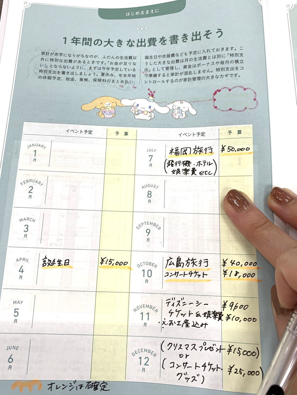 趣味の推し活で、最近ではコンサートのために各地をめぐっているのですが、そのたびに大きな出費が…。なんとか記録する術を探しておりました。このページでは、1年間の大まかな出費のスケジュールが立てられるので、かゆい所に手が届く仕様だと思いました!