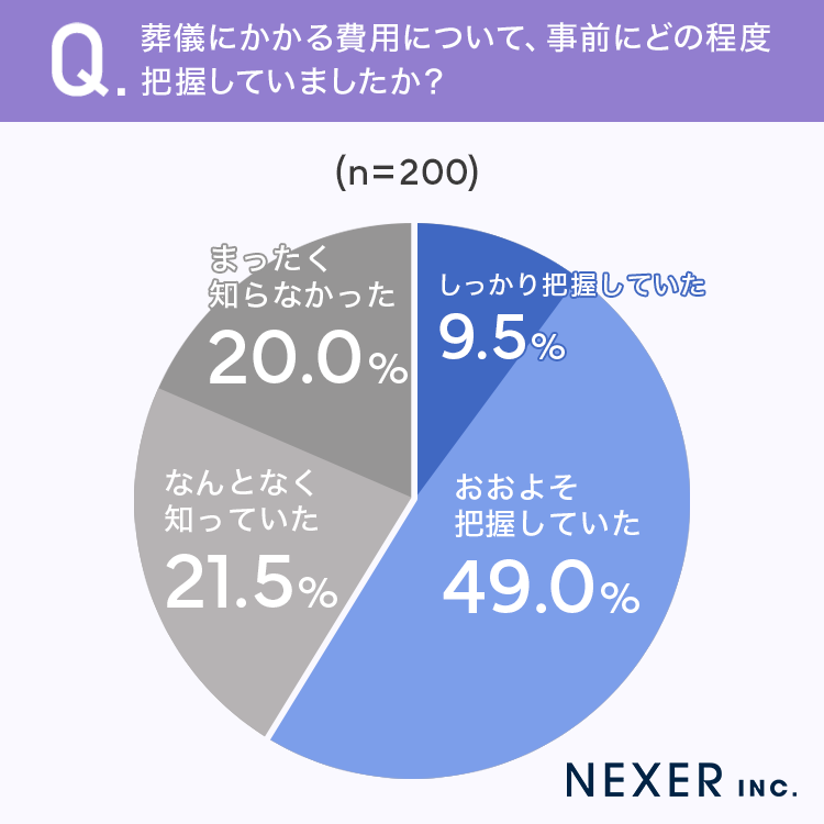 まず、葬儀にかかる費用を事前にどの程度把握していたかを聞いてみました。