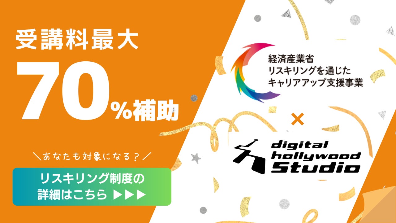 『デジタルハリウッドSTUDIO』とは、「好きなことを、好きな時間で、好きな場所で、自分らしく学ぶ。」をコンセプトに、目的や地域に特化した学習スタイルを提供する今までにないラーニングスタジオとして、全国に展開しています。デジタルハリウッド設立より30年以上もの間、多くの実績を生んできた教育ノウハウとメソッドを集約し、確実にスキルが身につくカリキュラムを提供しています。